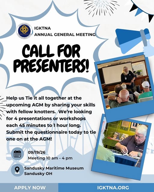We encourage anyone with ANY level of skill or experience who is interested in any aspect of knots and knot tying to join us. See the Membership page for more details.